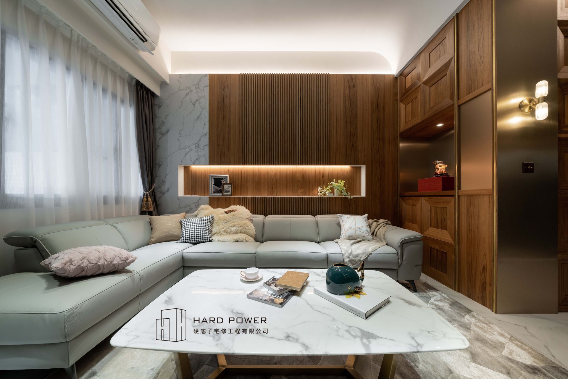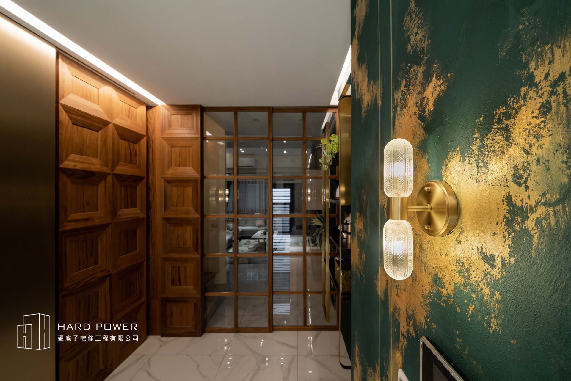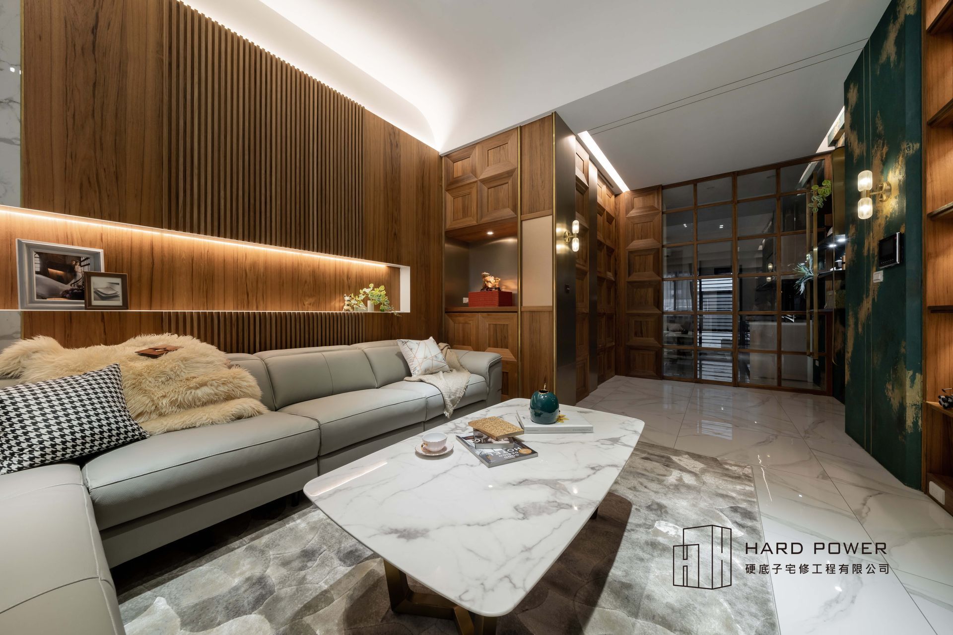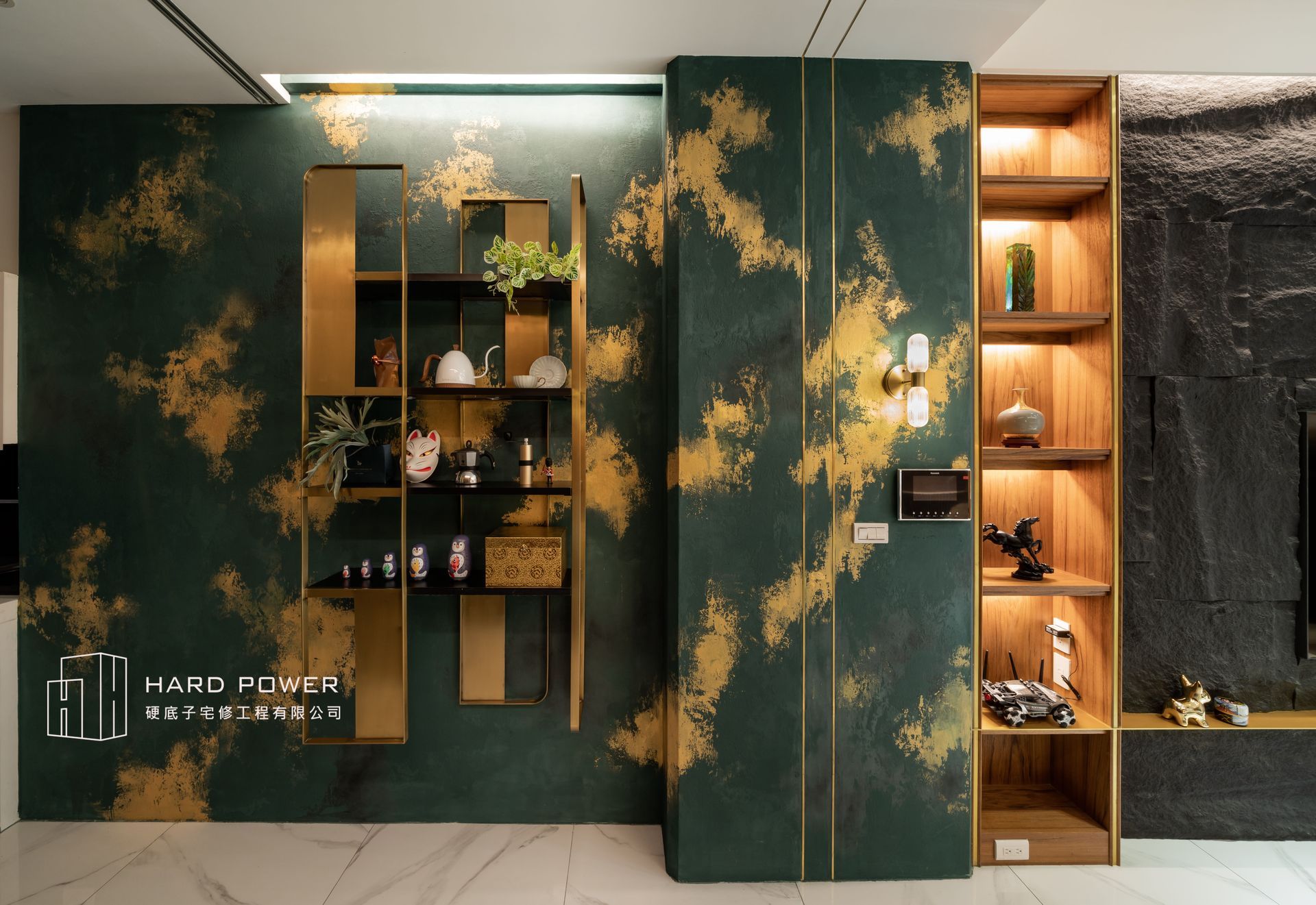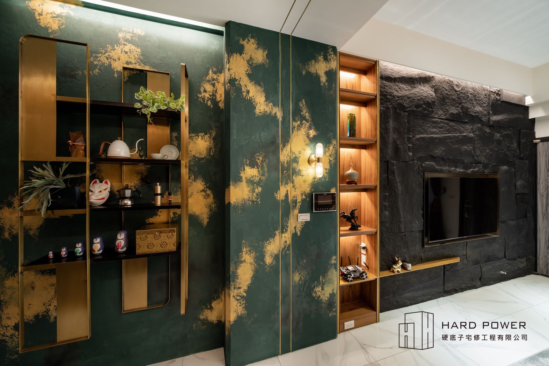 藝術漆營造的沉穩刷牆,搭配奢華大器的石紋地磚